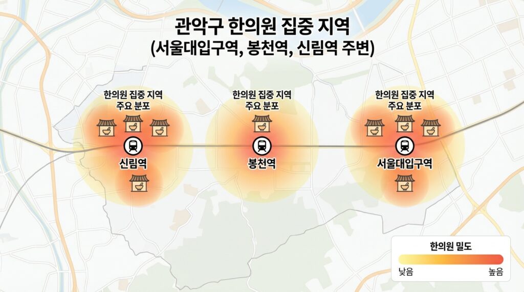 관악구는 서울대입구역 상권과 봉천동, 신림동 주거지역을 중심으로 한의원이 밀집해 있는 지역입니다. 동네 단골 한의원 개념은 점점 희미해지고 있으며, 젊은 세대일수록 온라인 검색을 통해 한의원을 선택하는 경향이 강합니다. 특히 관악구는 서울대학교와 인접한 대학가 특성상 20~30대 인구가 많아 디지털 채널을 통한 의료 정보 탐색이 활발합니다.